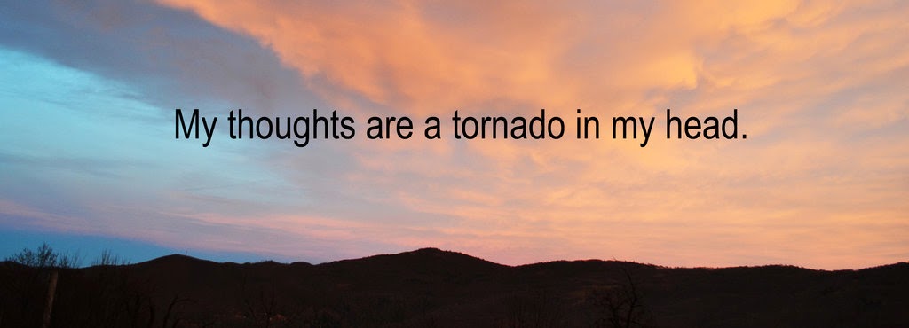 Some days I run from the house and walk and walk - miles - up one street down another ... trying to leave behind the tornado in my head - the noise - the words - the sadness